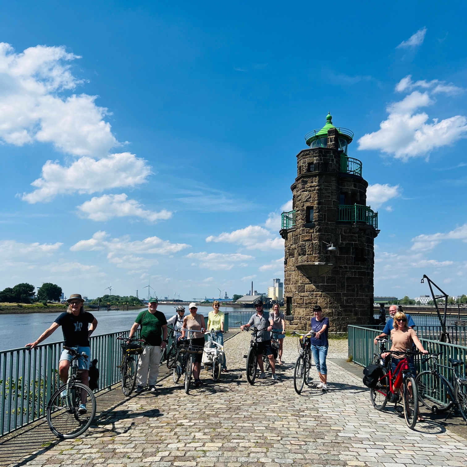 Mit unserem Lokalrunden-Format erkunden wir regelmäßig per Rad und vielen begeisterten Teilnehmer:innen Bremens schönste Seiten. Oft zusammen mit Made in Bremen und in Kooperation mit dem ADFC zu lokalen Produzent:innen, aber auch in Sachen Kultur, wie beispielsweise mit dem Literaturkontor zum Thema "Bremen - Stadt der Literatur". Die letzte Ausgabe war dann eher sportlich und anlässlich des BIKE IT! Fahrradfestivals und des diesjährigen Themenjahrs der WFB Wirtschaftsförderung Bremen im September 2025 unter dem Motto "Mit dem Rad zielsicher ins Grüne."